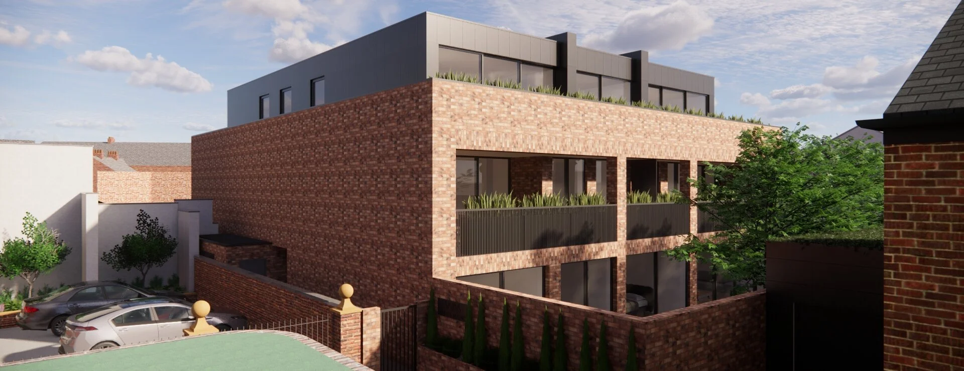 A new build apartment complex on a restrictive site located in the heart of Gosforth.
