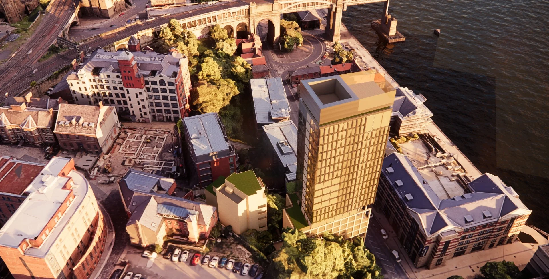 The client wanted to explore the viability of a tall building in this iconic location, situated in the Tyne Gorge area, mindful of recent tall buildings being constructed throughout the city.